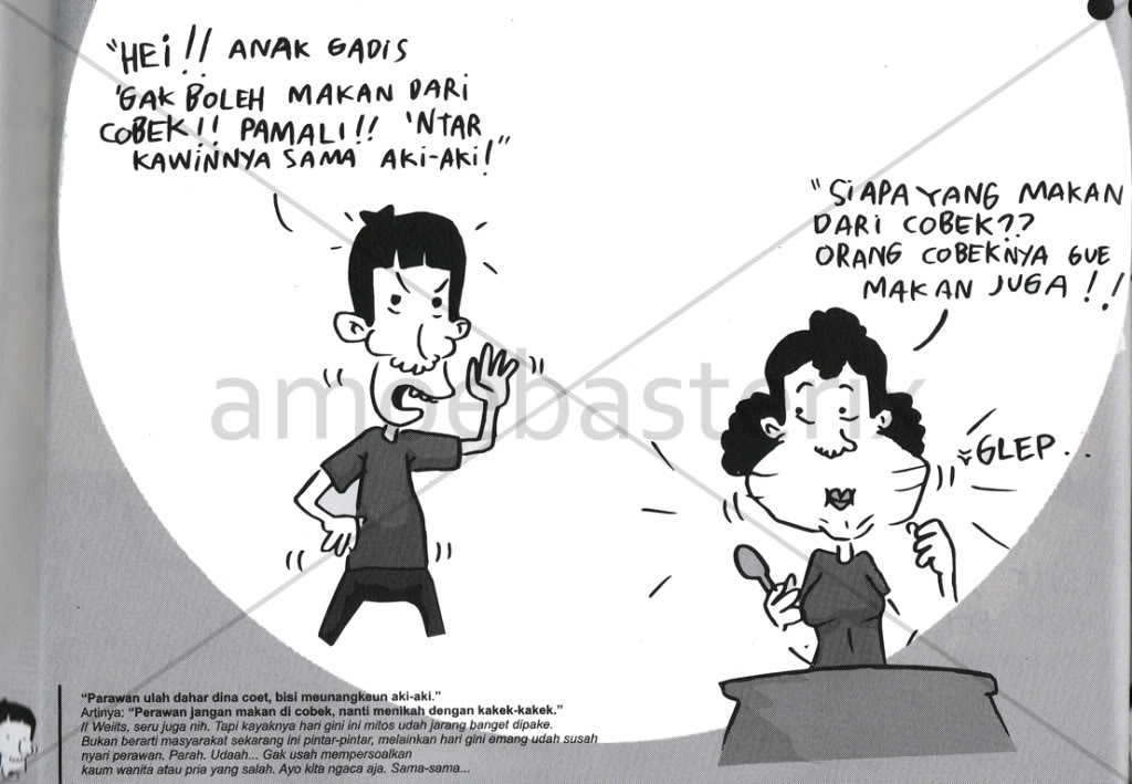 Saya kagum dengan kecintaan dia pada dunia komik. Dari bangku kuliah sudah mulai membuat komik sendiri dengan menggunakan spidol biasa yang kemudian difoto kopi untuk disebarkan ke teman-teman. Idenya sangat fresh, khas bobodoran anak Bandung dengan imajinasi yang tinggi. Bayangin aja, tokohnya punya 6 lubang hidung. Sampai sekarang saya masih suka tertawa geli membayangkannya.