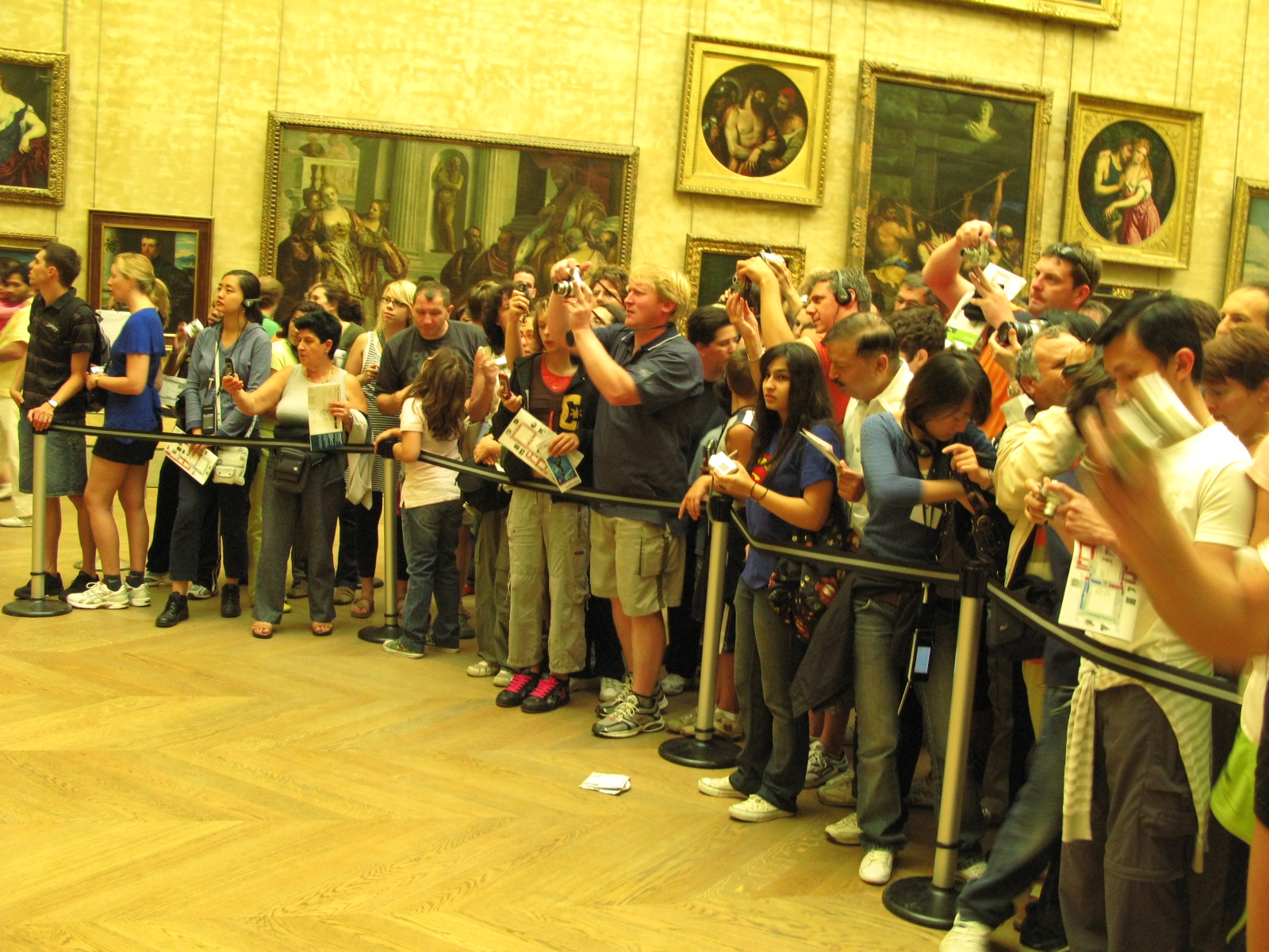 Sang Pemberi Kejutan Hidup, memberikan saya kesempatan untuk berdesak-desakan dengan puluhan orang dari berbagai warna dan bahasa demi melihat Mona Lisa yang senyumnya sebenarnya ngga indah. Well menurut saya, itu bukan senyum…karena nyaris tak ada garis-garis senyum yang terbentuk. Tapi semua orang rela melihat Mona Lisa dari jarak 1,5 meter. Bahkan manajemen Musée du Louvre, tempat Mona Lisa ‘diamankan’ harus memberi pembatas dari kayu biar ngga ada yang terlalu dekat dengan Mona Lisa. Masih belum cukup pake pembatas kayu, Mona Lisa juga dijaga beberapa security, setiap sudut harus dijaga pokoknya. Tiba-tiba saya ngerasa nih Mona Lisa kasian amat…udah senyumnya ngga full, disimpan dalam kotak trus tidak boleh dilihat dari dekat. Ah sepinya hidupmu Mona Lisa.