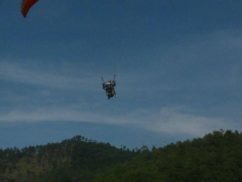 Untuk mengenyahkan rasa takut yang masih menyusup ke dalam alam sadar, saya mengajak Joni bercerita mengenai pengalamannya bermain paralayang ke beberapa negara Eropa. Beberapa kali dia sempat memberikan manuver menukik tapi itu semua dilakukan dengan sangat smooth, tiba-tiba ketinggian menjadi sensasi menyenangkan buat saya. Saya bisa melihat pemandangan kota berhawa sejuk itu dengan puas. Awan pagi yang masih bersih membuat saya seperti telah akrab dengan langit. Plus mataharinya belum terlalu terik jadi sangat sempurna untuk terbang di pagi hari.
